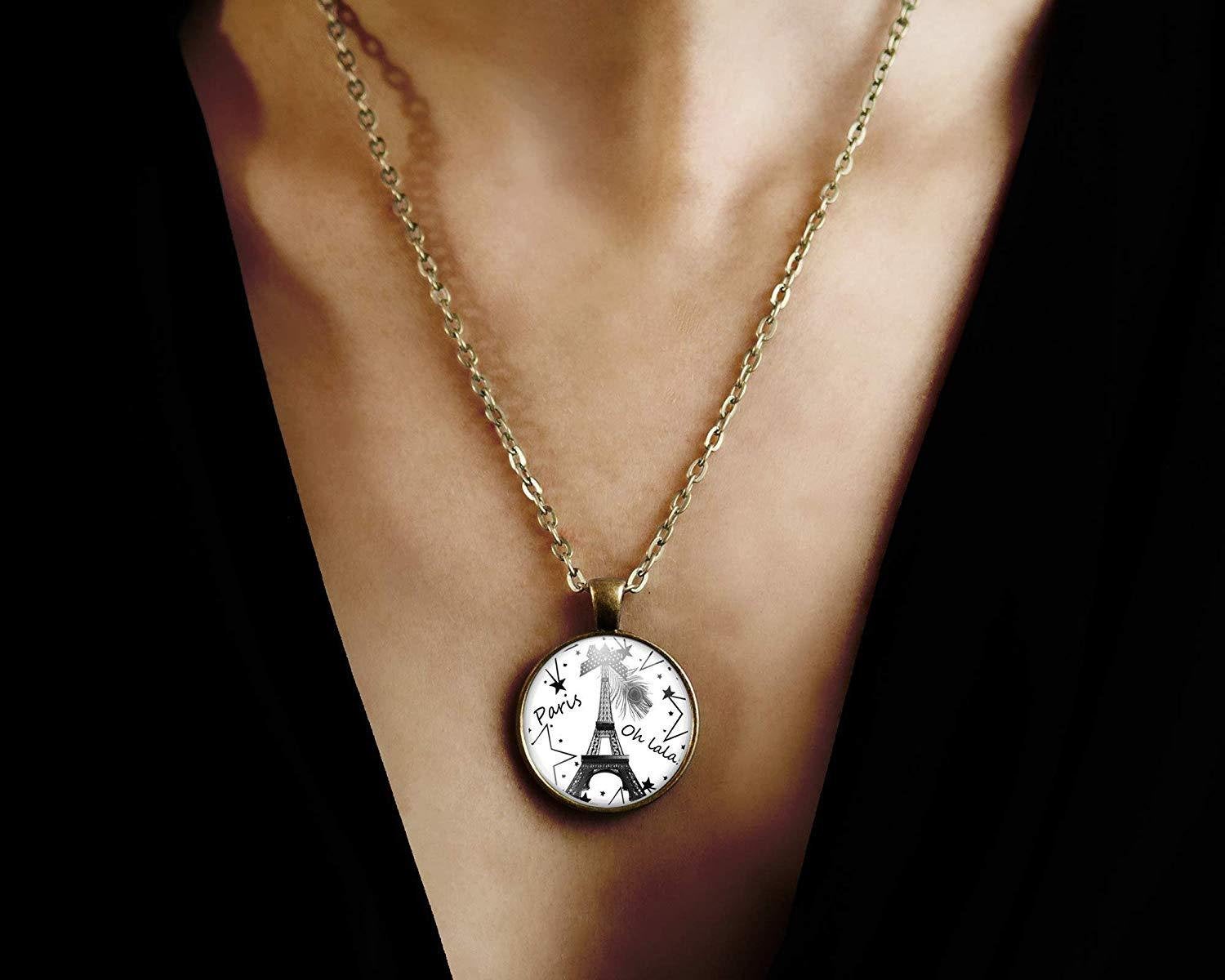 Collier cabochon, collier illustré "Paris", bronze (ref.90)