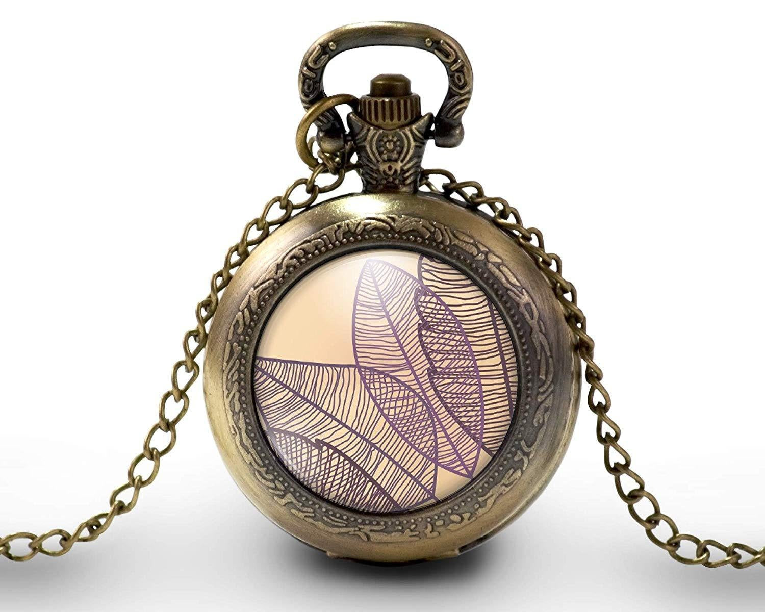 Montre gousset Feuille "Feuilles Violettes" , bronze (ref.45)
